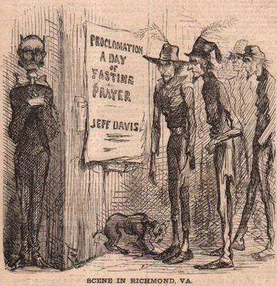 Just before the Chancellorsville Campaign, on April 2nd, 1863, the women of Richmond reached their breaking point. The prices and scarcity of bread had left their families on the brink of starvation. The population of the city had more than doubled, from 38,000 to 100,000 as people sought refuge, but the city couldn’t feed them. With the rural farms being overrun by troops; pilfering crops and killing livestock to feed themselves. The output to the cities had become scarce and Richmond was at the end of the line. Richmond had been hit continuously with bad luck since the fall of 1862. A smallpox pandemic from November 1862 to February 1863 decimated the poorer parts of the overly crowded city. An incredibly hard winter damaged the lower-class neighborhoods’ water pipes, forcing people to draw water from the river or the well in Capitol Square. An explosion on Browns Island on March 13th injured 69 people, most of whom were impoverished women and teenagers working while the men were at war. Couple all of that with the fact that the Union had blockades at every port and a March snowstorm dropped more than a foot of snow a week before the riot, the city wasn’t receiving food either way. The cherry on top occurred on March 27th though, Jefferson Davis called for a day of fasting and prayer… in the middle of a FAMINE. The few dealers who had access to flour and meal knew that there wouldn’t be more available for months and decided to raise prices of all bread products higher than they had been since the war started. Many couldn’t afford the prices and grew discontent, as well as fucking hungry. Who would have thought?!